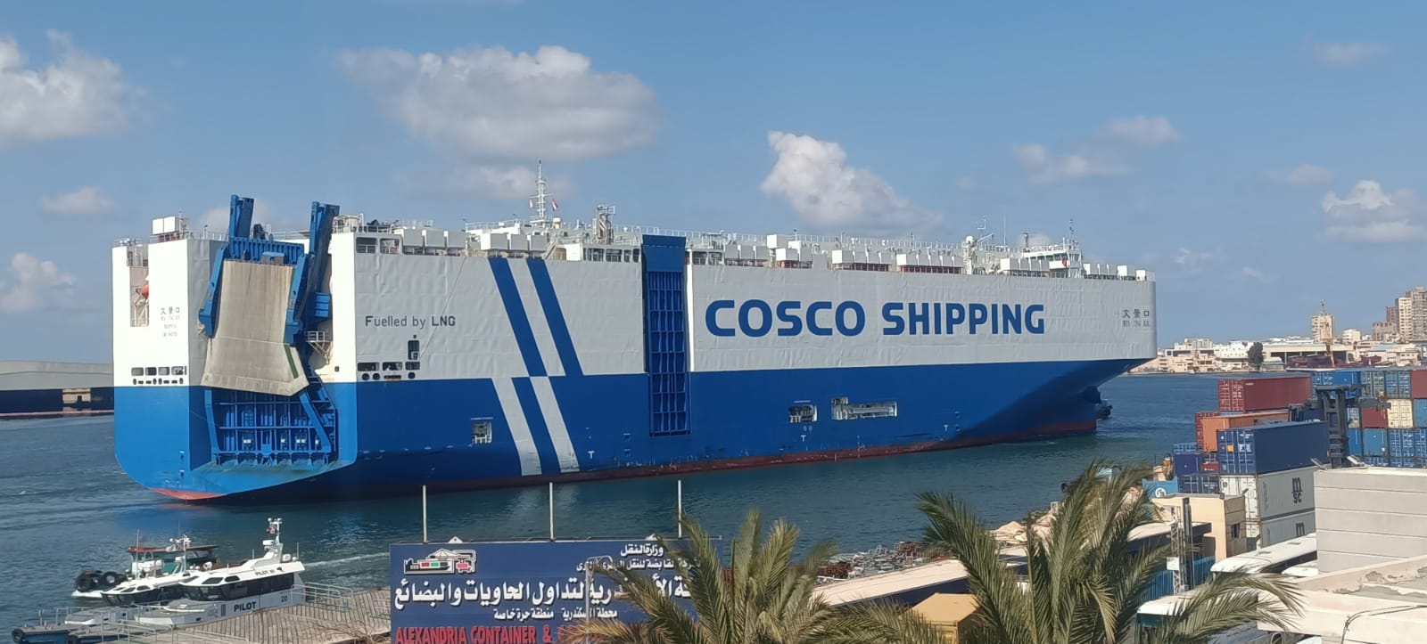 استقبلت الهيئة العامة لميناء الإسكندرية اليوم السفينة العملاقة WEN JING KOU (رقم تسجيل المنظمة البحرية الدولية IMO 9997555)، والتي تُعد من أكبر سفن الرورو (Ro-Ro) العاملة بالغاز الطبيعي المسال (LNG) على مستوى العالم، في حدث يعكس جاهزية الميناء الفنية والتشغيلية لاستقبال أحدث وأضخم الوحدات البحرية الصديقة للبيئة. وقد كان في استقبالها قيادات ميناء الاسكندريه على راسهم السيد اللواء بحري رئيس مجلس الاداره، حيث رست السفينة على الرصيف رقم 9، أحد الأرصفة المتعددة المتخصص في تداول بضائع الرورو بالميناء، حيث تم تنفيذ أعمال التراكي والتأمين وفق أعلى المعايير الفنية والملاحية، وبإشراف مباشر من قيادات الحركة والخدمات البحرية، وبمشاركة مرشدي الهيئة وقاطرات الإرشاد، بما يضمن سلامة السفينة والطاقم وكفاءة التشغيل. وتتميز السفينة WEN JING KOU التي يصل طولها الى 200 م بغاطس اكثر من 9 م بقدرات تشغيلية متقدمة، حيث تنتمي لفئة سفن نقل السيارات والشاحنات (PCTC) ذات السعات الكبيرة والتي تصل طاقتها الاستعابيه الى 9000 سياره، وتعمل بنظام دفع مزدوج يعتمد على الغاز الطبيعي المسال، بما يسهم في خفض الانبعاثات الكربونية والالتزام بالمعايير البيئية الدولية الصادرة عن المنظمة البحرية الدولية، وهو ما يتماشى مع توجهات الدولة المصرية نحو دعم النقل البحري الأخضر وتعزيز الاستدامة البيئية بالموانئ. وأكدت الهيئة أن نجاح استقبال هذه السفينة الحديثة يعكس كفاءة البنية التحتية لميناء الإسكندرية، وتطور منظومة الإرشاد والقطر والتراكي، فضلًا عن جاهزية الأرصفة لاستقبال السفن ذات الحمولات والأحجام الكبيرة وكذا الارصفه المتخصصه مثل ارصفه الرورو، وذلك بما يدعم مكانة الميناء كمركز محوري لحركة التجارة الدولية في البحر المتوسط. ويأتي هذا الحدث في إطار استراتيجية الهيئة لتعظيم تنافسية الميناء، وجذب الخطوط الملاحية العالمية، وتعزيز قدرته على التعامل مع أحدث أجيال السفن المتخصصة، بما يسهم في دعم الاقتصاد الوطني ورفع كفاءة سلاسل الإمداد والتوريد