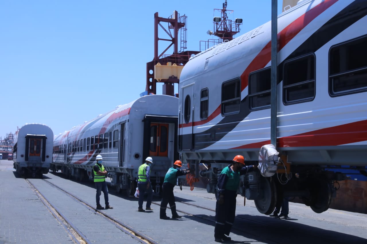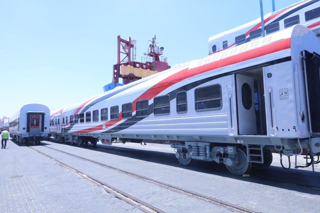 أعلن وزير النقل الفريق مهندس/ كامل الوزير عن وصول دفعة جديدة من عربات ركاب السكك الحديدية الجديدة بإجمالي 10 عربات الى ميناء الإسكندرية ليصل اجمالي ماوصل حتى الان الى مصر الى 33 عربة ضمن صفقة تصنيع و توريد 1300 عربة جديدة والتي تعد أكبر وأضخم صفقة في تاريخ سكك حديد مصر والتي كانت قد وقعتها هيئة السكك الحديدية المصرية وشركة ترانسماش الروسية الممثل للتحالف الروسي المجري بقيمة مليار و16 مليون و50 ألف يورو صرح وزير النقل أن العربات التي وصلت إلى ميناء الإسكندرية هي 10 عربة درجة ثالثة ذات تهوية ديناميكية وسيتوالى بعد ذلك وصول باقي العربات على دفعات بمعدل 35عربة لكل دفعة وذلك وفقاً للجدول الزمني المحدد مضيفا أن صفقة الـ 1300 عربة جديدة للركاب تشمل 800 عربة مكيفة (500 درجة ثالثة مكيفة وهى خدمة جديدة يتم تقديمها للركاب لأول مرة في تاريخ سكك حديد مصر و180 درجة ثانية فاخرة و90 عربة درجة أولى فاخرة و30 عربة بوفيه مكيفة) و500 عربة درجة ثالثة ذات تهوية ديناميكية لافتا إلى أنه سيتم تركيب العربات الجديدة التي وصلت ودفعات العربات الجديدة التي ستصل تباعا مع الجرارت الجديدة ليرى المواطن خلال الفترة القادمة بدء تشغيل عدد من القطارات المكونة من جرارات وعربات كلها جديدة للارتقاء بمستوى الخدمة ، وذلك في اطار خطة تشغيل جديدة و شاملة .لتشغيل السكة الحديد تعتمد على تقديم أعلى مستوى من الخدمة لجمهور الركاب