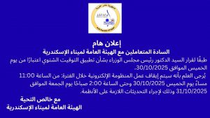 اخر الإعلانات الهامة بهيئة ميناء الاسكندرية
